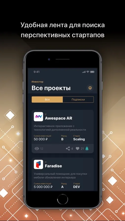 - Настраиваемая лента для отслеживания интересующих стартапов