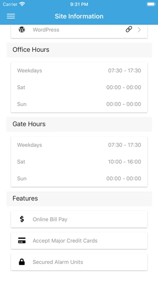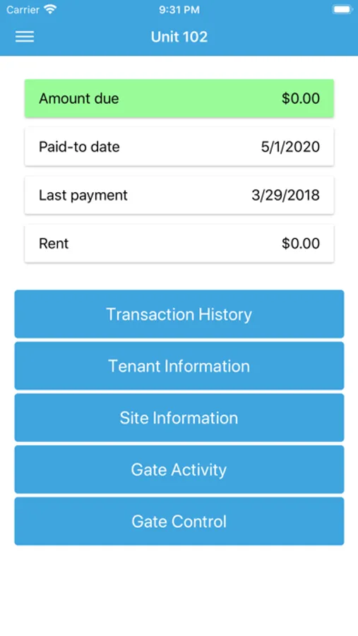 Tenants can view their account information, including transaction history, gate access history, and account status. Tenants can also open the gate from the comfort of their vehicle, within a proximity to the keypad that is set by the facility.