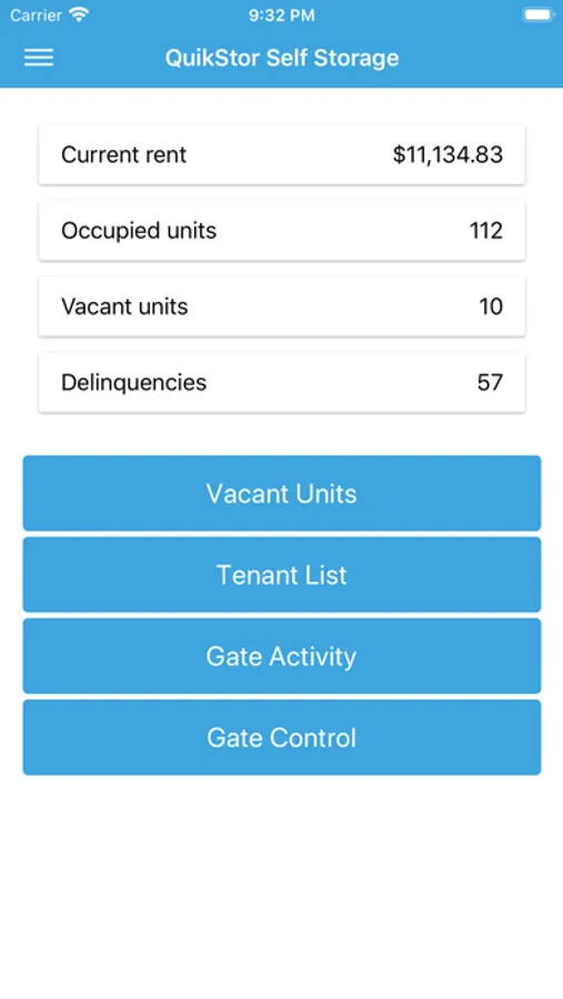 The manager interface allows self-storage managers to quickly and intuitively access information like the tenant roster or list of vacant units with just one tap. Managers can also view live gate activity and control gate functions on site or remotely.