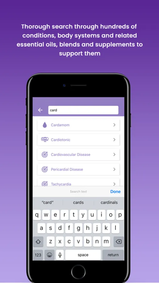 - search between hundreds of conditions and choose the right essential oil, blend or supplement to support you,
