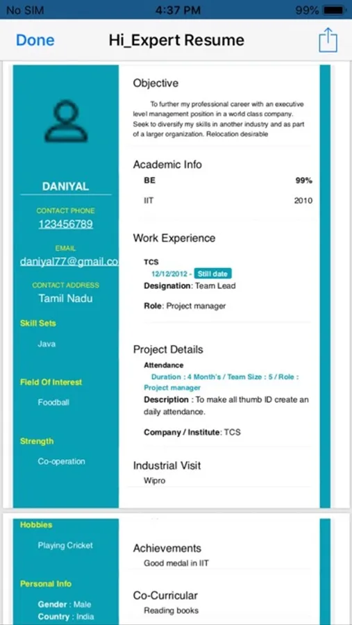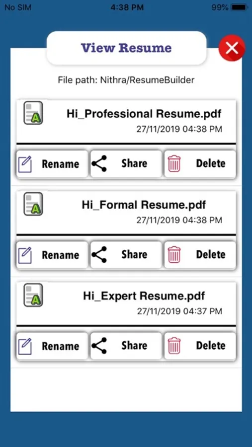 The generated resume in PDF format can be shared or stored using online and offline options provided. In this resume builder cv maker app, it is easy to create and share the best resumes with the help of my resume builder CV.