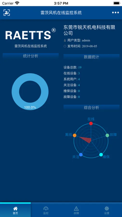 雷茨云是一款风机在线监控软件,方便用户通过App查看风机设备的实时运行参数、操作日志、故障设备、故障信息..