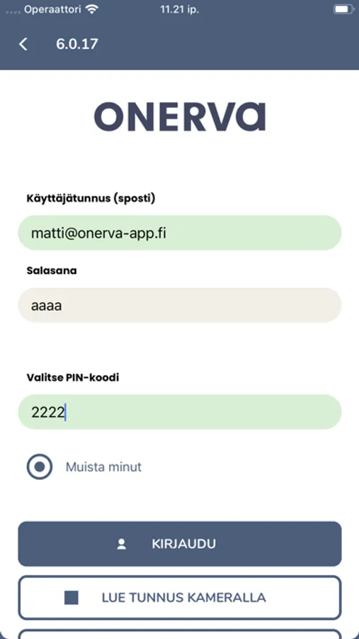 Huom! Onervan käyttöä varten tarvitset erilliset Onerva-tunnukset.