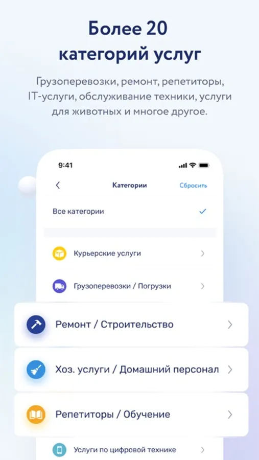 Создание заказа в приложении занимает несколько минут. Вы можете опубликовать задание и выбрать среди откликов или предложить задание конкретному специалисту, выбрав его по отзывам и рейтингу.