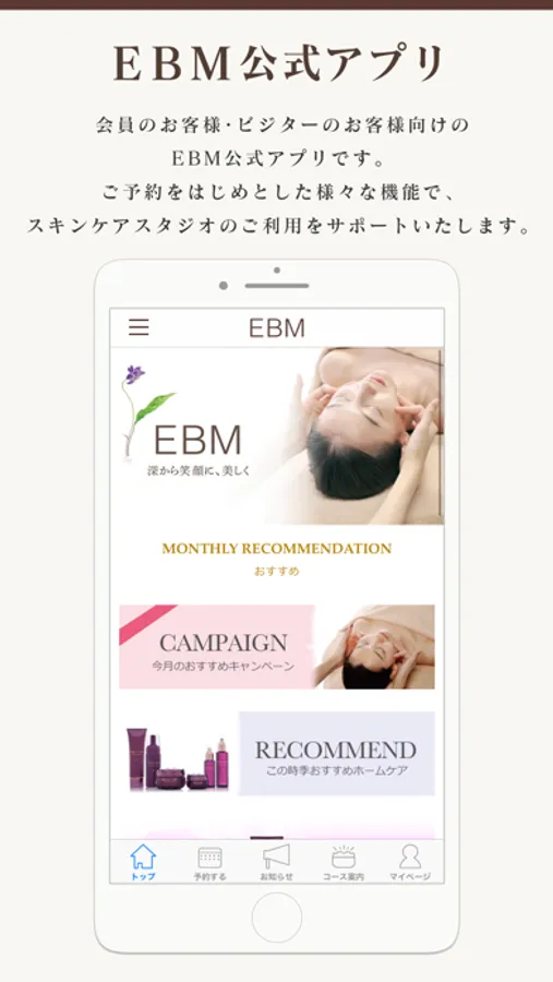 EBM公式アプリは、会員のお客様、ビジターのお客様向けのEBM公式アプリです。