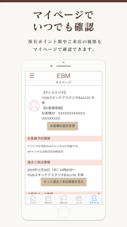 ご予約をはじめとした様々な機能で、スキンケアスタジオのご利用をサポートいたします。