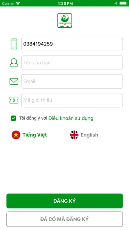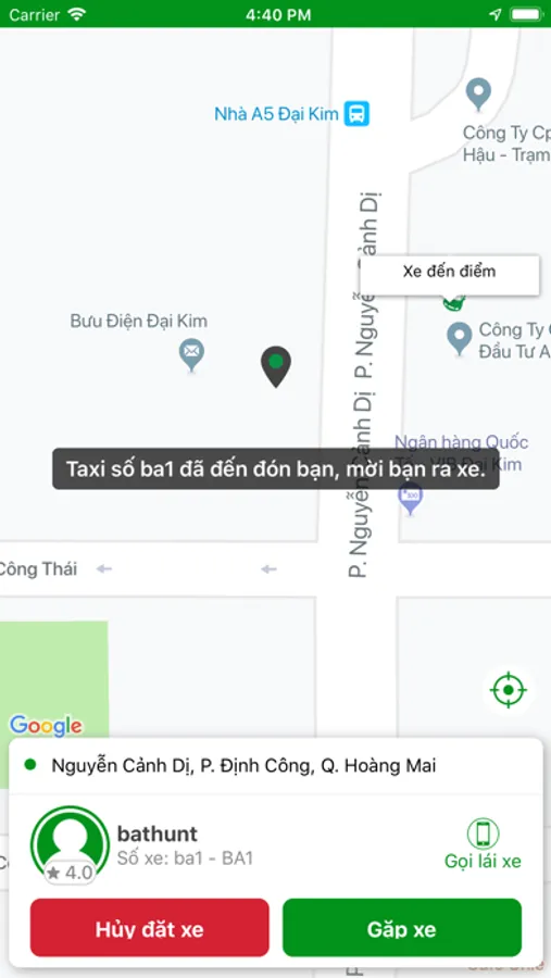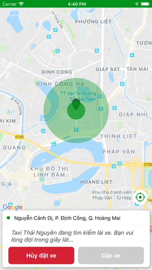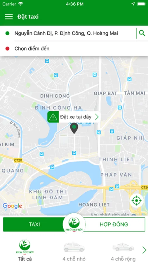 Ứng dụng đặt xe của Thái Nguyên Taxi tại Thái Nguyên.