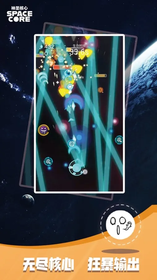 该模式中会不断生成敌人,敌人会随时间增加越来越强并会出现BOSS,玩家需要不断消灭敌人并走位躲避弹幕,是男人就活过100s!