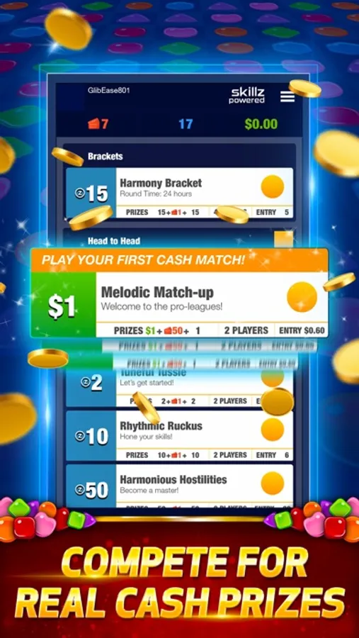 This is no ordinary match-3 game! Match Harmony sees you compete against real people to win real cash prizes. Practice your skills for free to take on the competition.