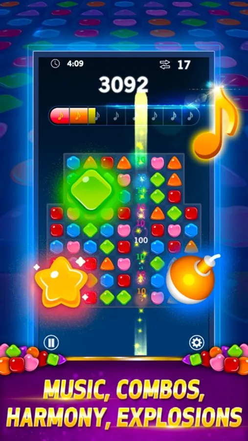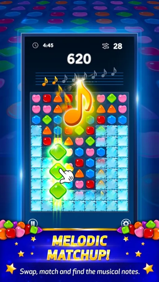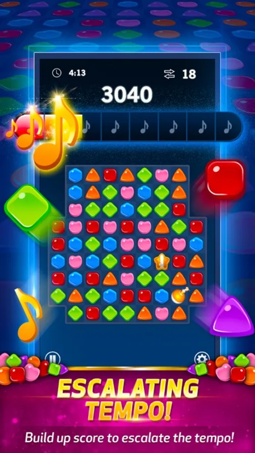 Feel the rhythm and keep in time to clear the board and uncover the music to win big! Complete objectives and race against the clock to defeat your opponent.