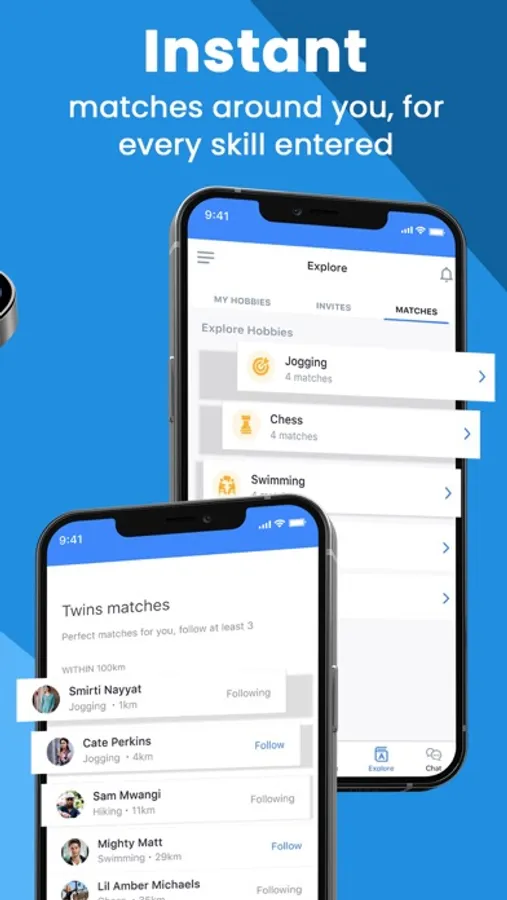 - If you just relocated to a new city but don’t know where to begin, get instant matches around you into the skills you loved in your old city. E.g. Yoga.