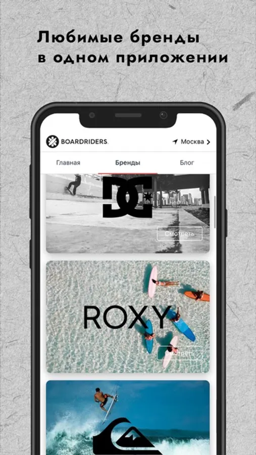 Boardriders — это проект, объединивший ведущие экшн-спорт бренды: Quiksilver, Roxy, DC Shoes, Billabong, Element, RVCA и VonZipper. В Boardriders можно найти всё, что связано со сноубордингом, сёрфингом и скейтбордингом – от повседневной одежды и обуви до профессионального оборудования и досок. Это проект, объединяющий вокруг себя ценителей городской культуры и стиля, а также людей, движимых страстью к катанию на досках, будь то горы, океан или улицы города.