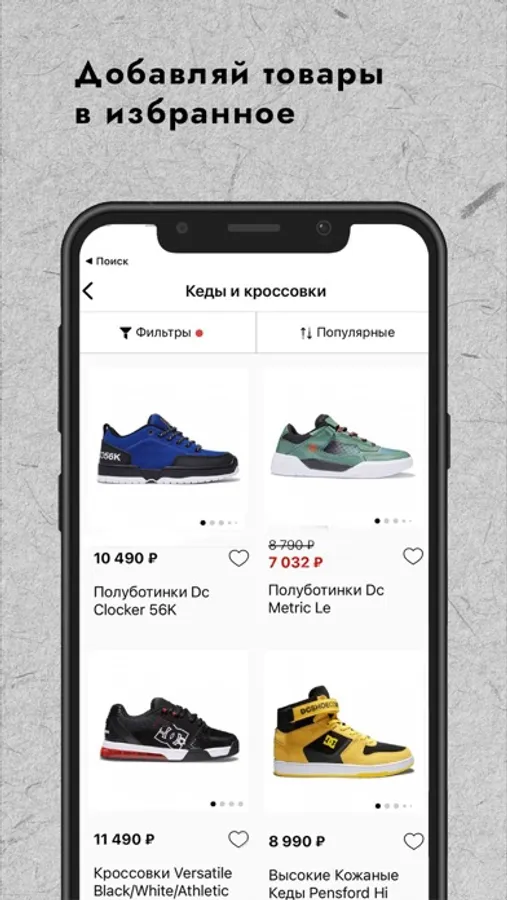 Полный каталог с удобными фильтрами, возможностью добавлять товары в избранное и рекомендациями