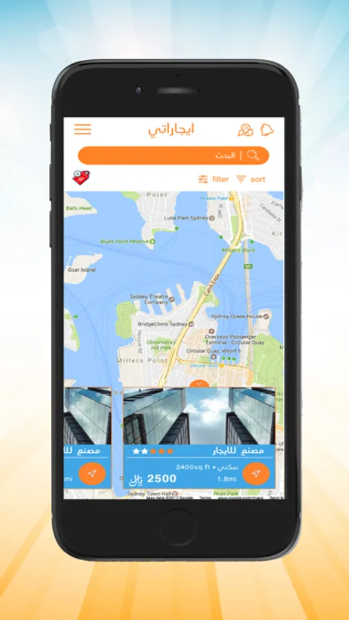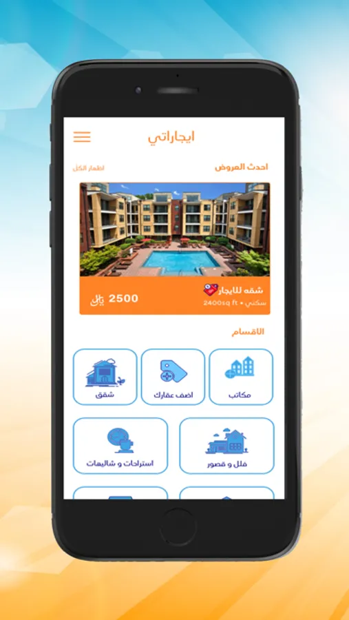 يسمح لك تطبيق ايجاراتي بالبحث بسهولة عن عقار وتصفح القوائم المتاحة بالصور أو السعر أو الخريطة.