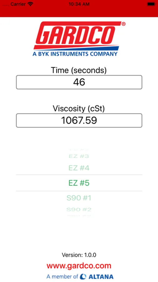 Quickly and Easily calculate the kinematic viscosity or drain time of your Gardco or BYK viscosity cups.