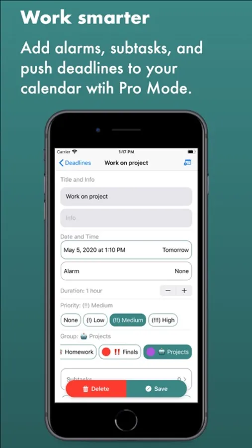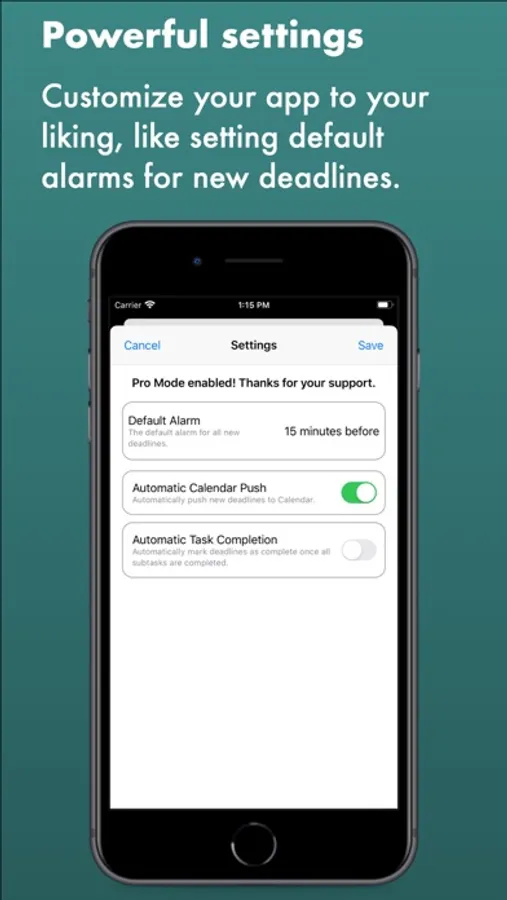 Everyone can initially create three custom groups and ten different deadlines. Upgrading to Pro Mode unlocks several benefits: