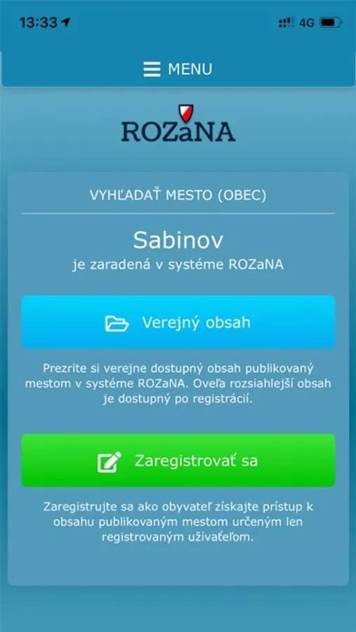 - Pre zobrazenie verejného obsahu v ROZaNA nie je nutná registrácia, pre rozšírené zobrazenie v ROZaNA je nutné sa zaregistrovať a tak dostávať adresné oznamy a hlásenia, ktoré sú určené len pre Vás.