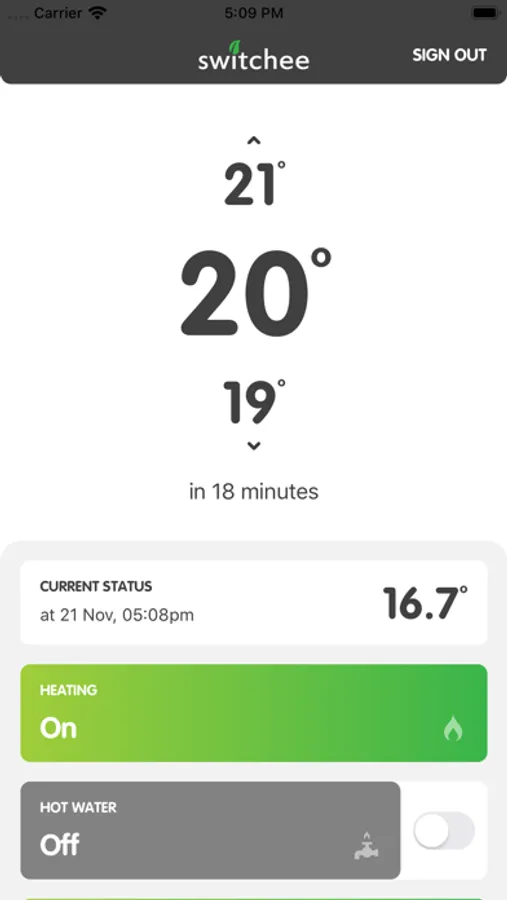 To use the most updated version of the app effectively, please check your Switchee device is on firmware version 1.11.1. This can be done by clicking on Settings (spanner) in the top left hand corner of the Switchee's home screen and then after pressing 'Status', please review the firmware version three rows down. If not on firmware version 1.11.1, please give Switchee a call on 0800 133 7957.