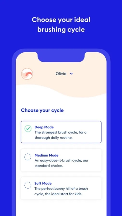 * Link individual users’ preferred brushing cycle; for now you will have a “Medium Mode” available