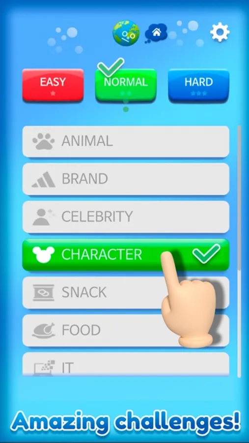Choose and play non stop themes you love such as Animals, Countries, Actors or Delicious Foods! Choose you difficulty and have fun
