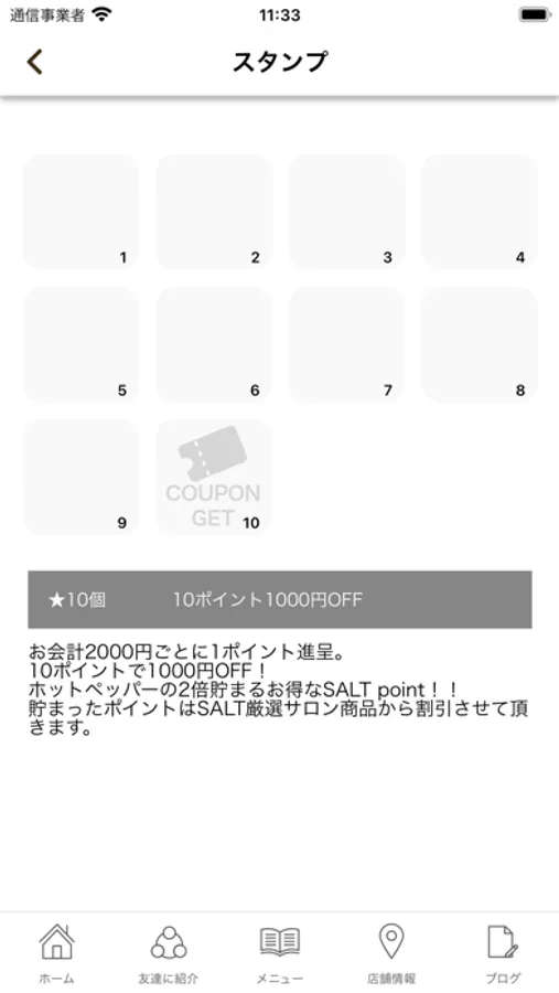 ご来店スタンプをためるとお得なクーポンが発行されます。