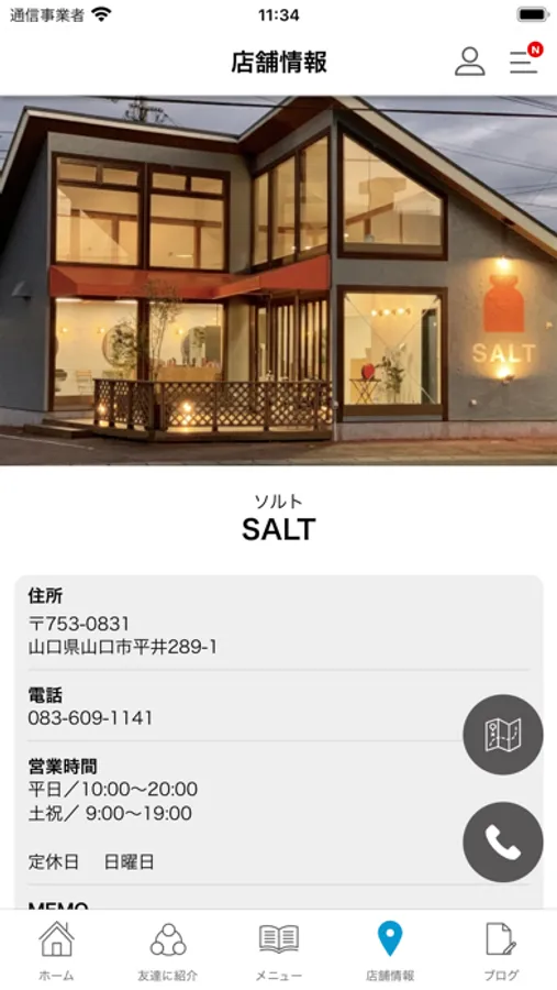 店舗のマップが表示され、地図アプリとも連携しているので、初めてのご来店の時も簡単に見つけることができます。