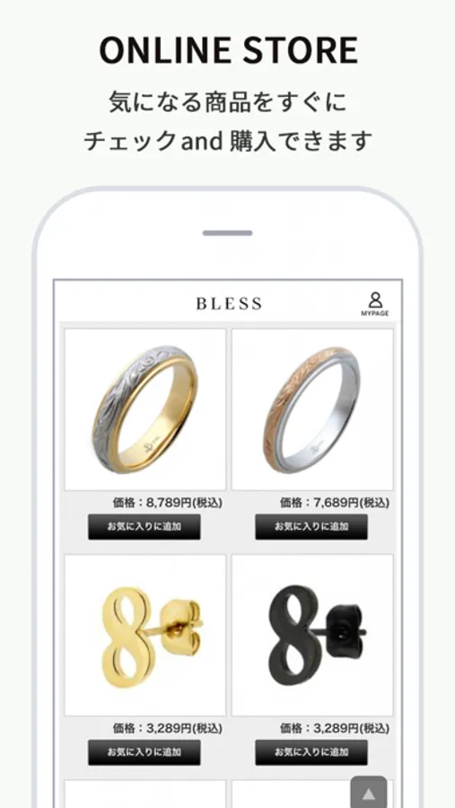 ショップ名のBLESSには、アクセサリーを単なるファッションツールとしてだけではなく、意味のある「ラッキーアイテム」として身に付けてほしいという願いが込められています。