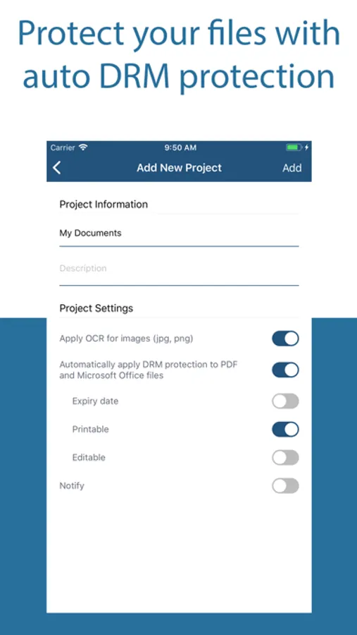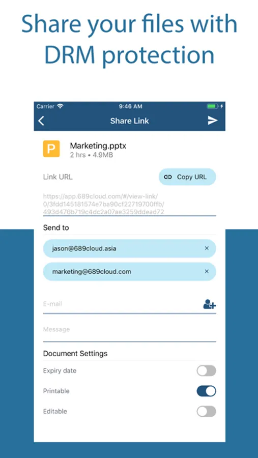 Protect and share files using DRM technology – Files on 689Cloud can be protected and shared with DRM technology that lets you control who can view or download the file