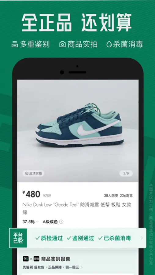 上95分购买潮流好物能省钱,专业查验鉴别,专业清洗,正品交易可还价,让你轻松无忧做潮人。