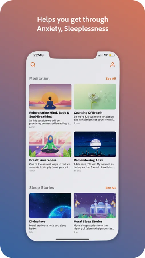 SAKEENAH is an Islamic mindfulness & mental health app developed to improve their emotional and mental well-being through peaceful guided Islamic stories and Mindful Audio sessions and courses created by marrying modern science and religion.