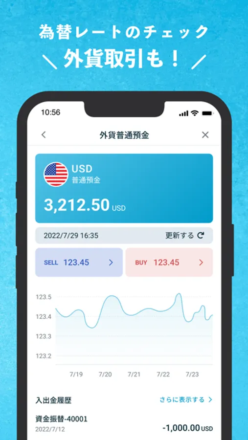 ■外貨預金・全13通貨の為替レートを確認し、追加の認証不要でお取引可能です。