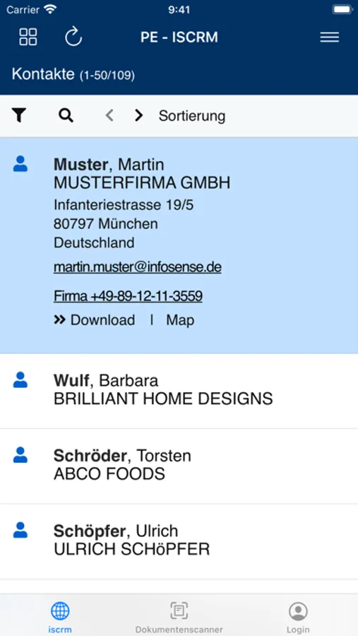 Die infosense App stellt die mobile Version der Cloud Unternehmenssoftware für Groupware, CRM und ERP zur Verfügung und kann kostenlos heruntergeladen werden. Sie konzentriert sich auf die Funktionen der Unternehmenssoftware, die vorrangig unterwegs benötigt werden. Dazu zählen Termine, Aufgaben und E-Mails, Kontakte mit vollständiger Historie und für den Vertrieb die Leadverwaltung. Eine mobile Arbeitszeiterfassung runden das Funktionsangebot für Serviceunternehmen ab.