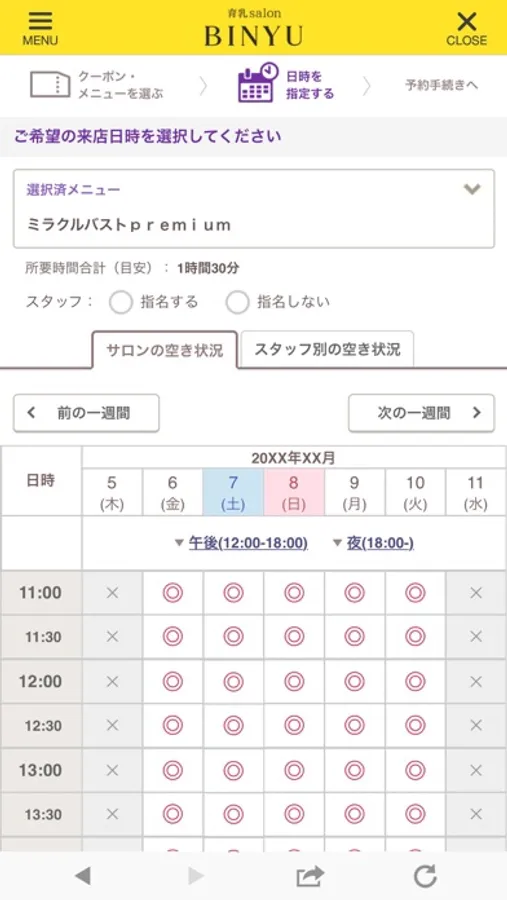 ご希望のメニュー・日時を指定して予約できます。安心してご予約ください。
