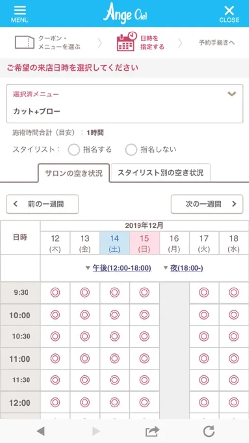 ご希望のメニュー・日時を指定して予約できます。安心してご予約ください。
