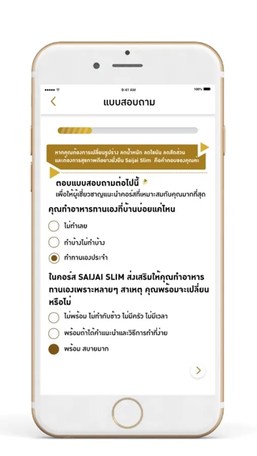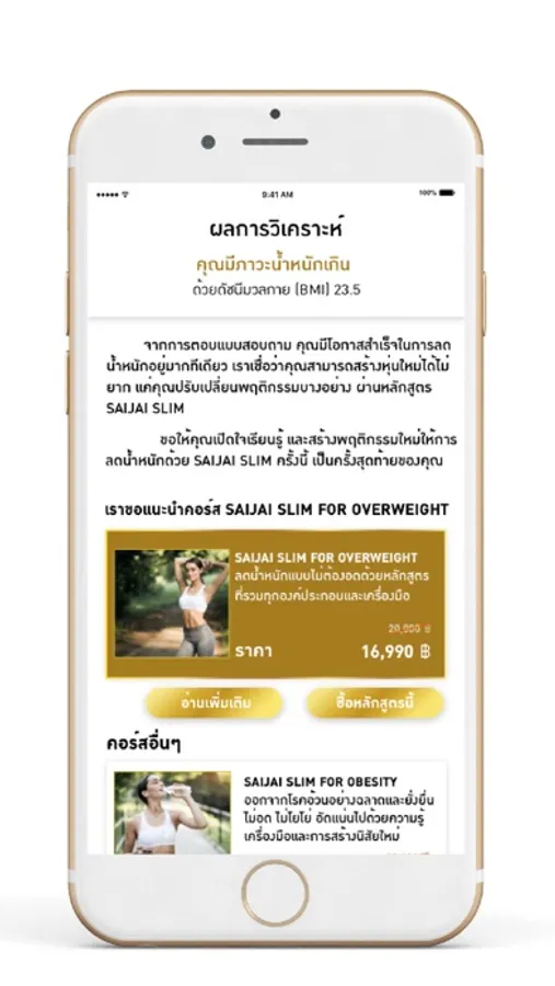 โปรแกรม SAIJAI SLIM เป็นโปรแกรมลดและควบคุมน้ำหนักแบบองค์รวม โดยจะช่วยผู้ที่หมดหวังกับการลดน้ำหนักแบบผิดๆ จากความเชื่อตามกระแสนิยม สู่การลดน้ำหนักอย่างยั่งยืน