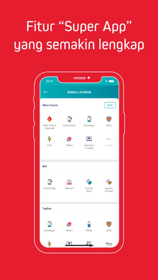 5. Pembayaran berbagai Tagihan, seperti Telkom, Telkomsel Halo, Indihome, PLN dan BPJS Kesehatan.