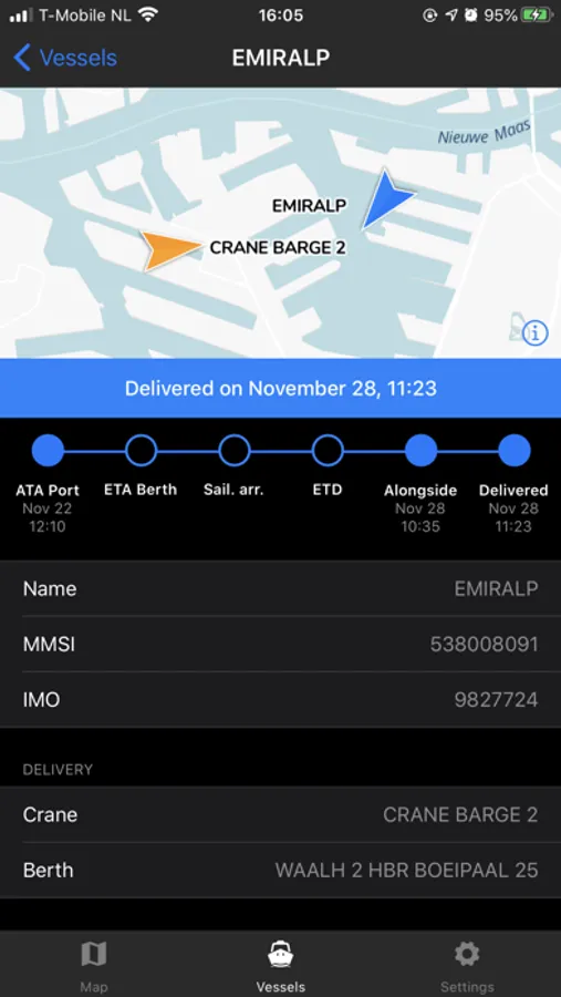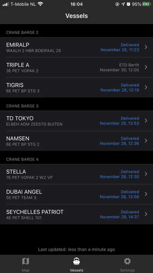 Tool for Ship Spare Logistics to view and see the status of deliveries to clients. View where a vessel currently is and where it is expected to arrive.