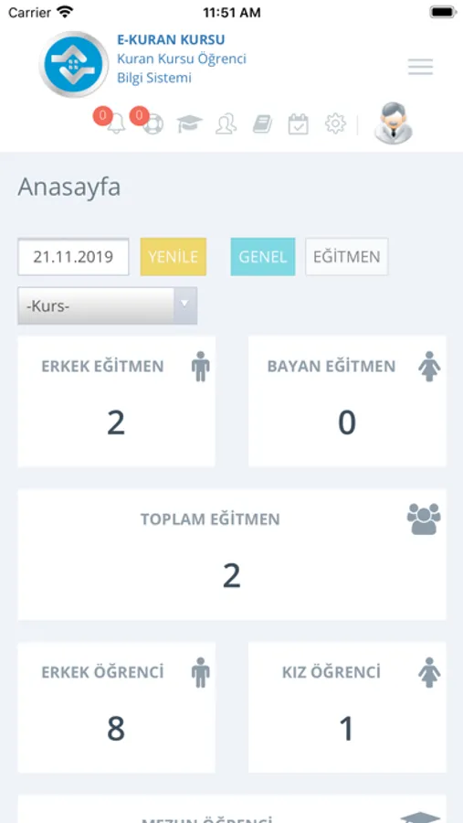 1. Kurumu bağlı tüm kuran kurslarının öğrenci sistemini tek çatı
