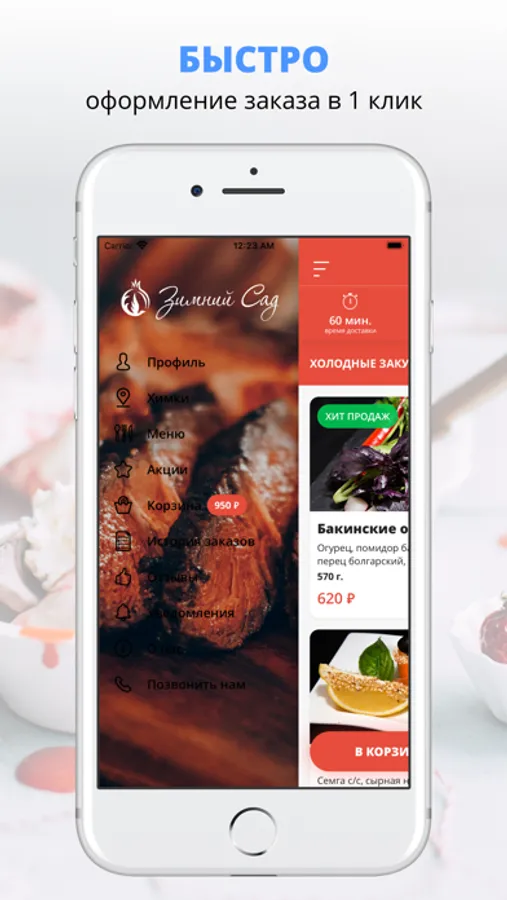 Доставка в ресторане "Зимний Сад" осуществляется БЕСПЛАТНО при минимальной сумме заказа 1200 рублей.