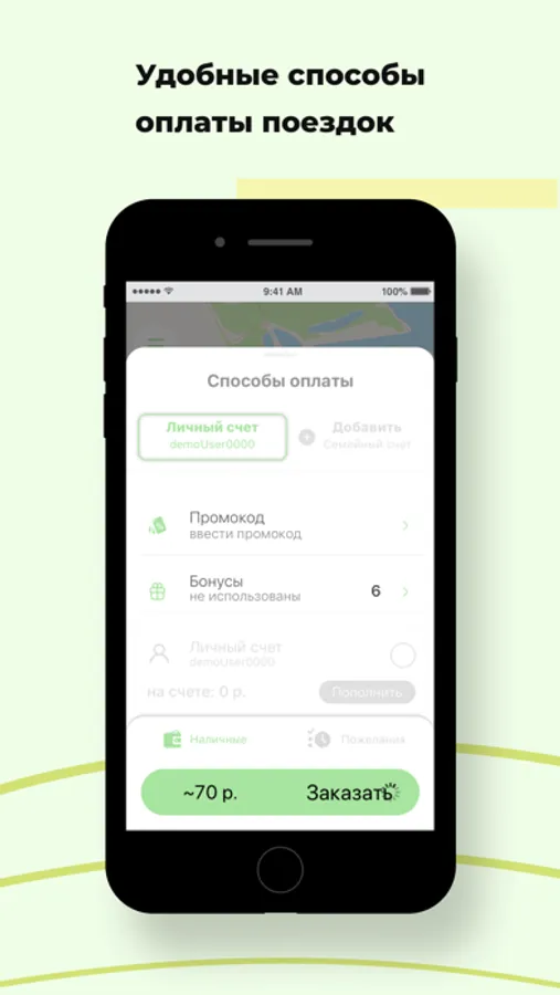 Оплачивайте поездки наличными, картой или накопленными бонусами.