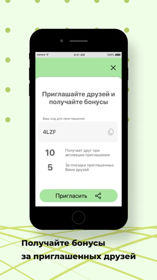 Приглашайте друзей в приложение и зарабатывайте бонусы с помощью реферальной системы. Оплачивайте ими и экономьте на поездках.