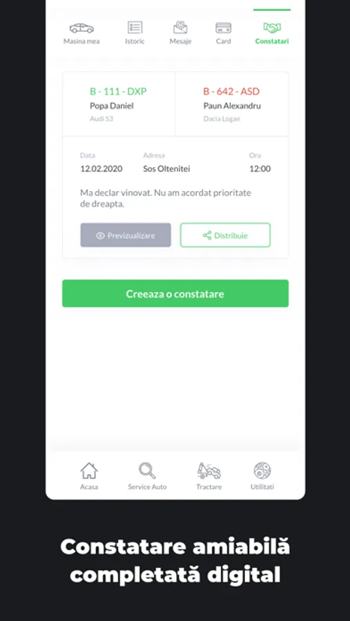 În cazul nefericit al unui accident ușor, ai formularul de constatare direct în aplicație și îl completezi simultan cu celălalt șofer, fără teama greșelilor de completare. La final, îl trimiți electronic asiguratorului și gata!