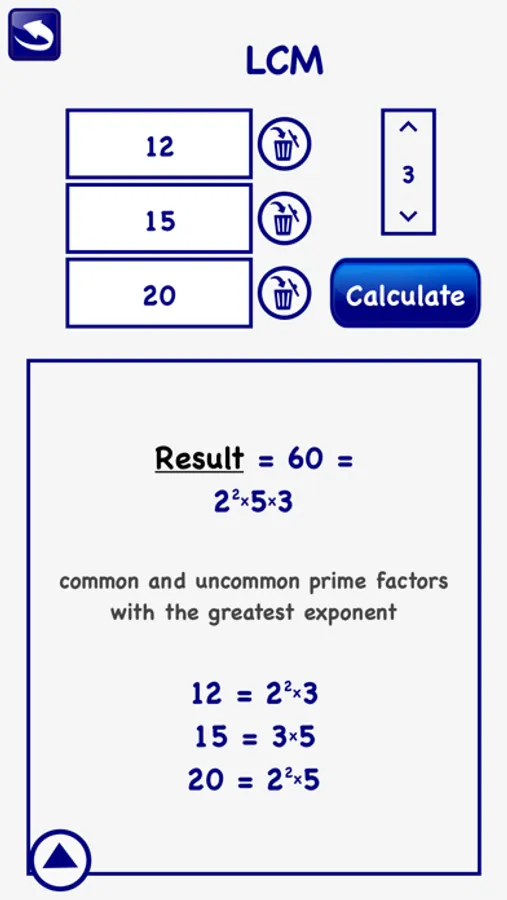 This application is a mathematical tool that helps to find the LCM (least common multiple) and the GCD (greatest common divisor) of up to 4 numbers.