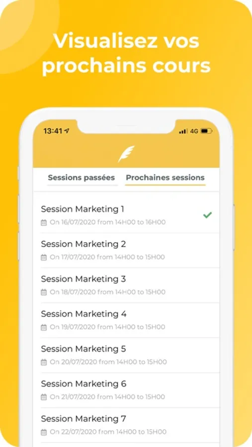 - Visualisez vos futurs cours via le calendrier, la vue journalière ou mensuelle.