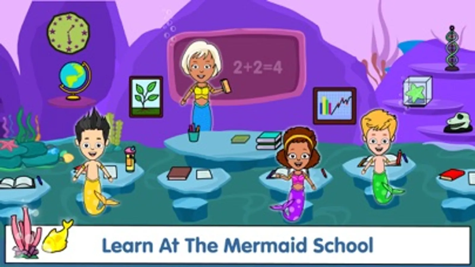 Along with the other features, our little mermaids will also get the experience of an Underwater Salon, Police station, Restaurant, Daycare, and an Accessories Shop. Play with cute characters at these locations and have lots of fun.