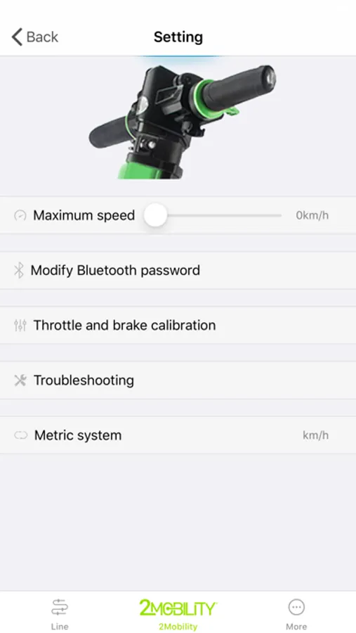 The car and the app are connected by Bluetooth. After connecting, you can carry out some operations of the car, such as setting the speed limit, turning on the lights, etc. The app will also display some driving data such as speed.