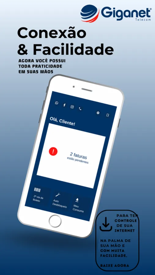 A Giga Net quer te manter sempre conectado e estar cada vez mais próxima de você! Com esse aplicativo você terá acesso a todas as facilidades de uma empresa conectada que prioriza a qualidade dos serviços e o bem estar de seus clientes.