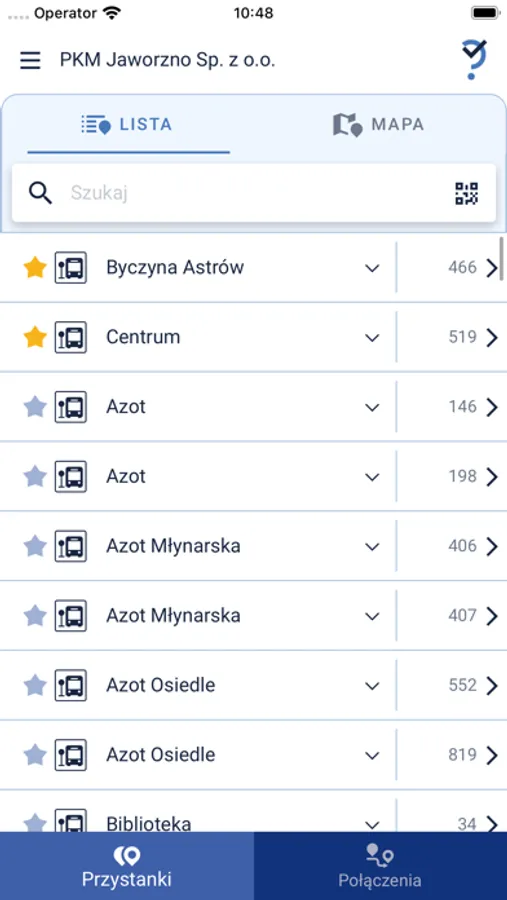 Aplikacja umożliwia wyświetlenie wirtualnej tablicy z najbliższymi odjazdami środków komunikacji zbiorowej ze wskazanego przez pasażera przystanku w czasie rzeczywistym – tj. z uwzględnieniem aktualnej sytuacji drogowej. Interesujący nas słupek można wybrać z listy, wyszukać go na mapie lub też wybrać skanując jego kod QR. Często wykorzystywane przystanki łatwo dodamy do ulubionych, aby mieć do nich szybki dostęp. Aplikacja ponadto umożliwia odbieranie komunikatów definiowanych przez przewoźników.