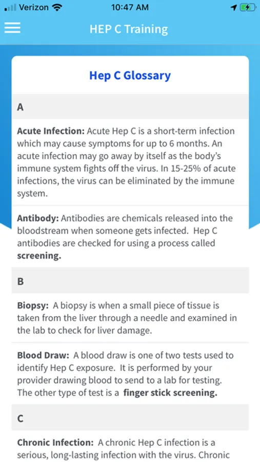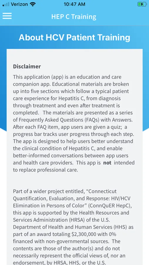 A companion for Hepatitis C education and care, this app presents information relevant to a