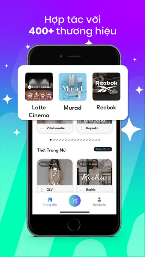 Chúng tôi hiện đang cung cấp tính năng Mua trước trả sau đối với dịch vụ nạp tiền điện thoại và mua sắm tại các ngành hàng Sức khỏe & Làm đẹp, Thời trang nam nữ, Phụ kiện thời trang, Nhà cửa Đời sống, Giáo dục, Thể thao & Du lịch, Mẹ & bé … với hơn 200 thương hiệu, nổi bật như Curnon, LUG.vn, Vua nệm, Sablanca, Thế Giới Skin Food, OLV, Marc, Sablanca, Paula’s Choice, Mắt Việt, Hải Triều, Vincy, DHC Việt Nam …